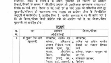 धामी कैबिनेट के विस्तार के बाद अब विभागों का बंटवारा, धन सिंह से स्वास्थ्य तो गणेश से ग्राम्य विकास विभाग हटा, पढ़े किसे क्या मिला