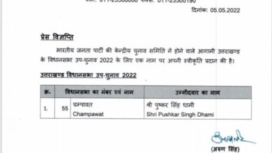 देहरादून। भाजपा ने चंपावत उपचुनाव के लिए आज मुख्यमंत्री पुष्कर सिंह धामी को अधिकृत प्रत्याशी घोषित कर दिया है। उपचुनाव…