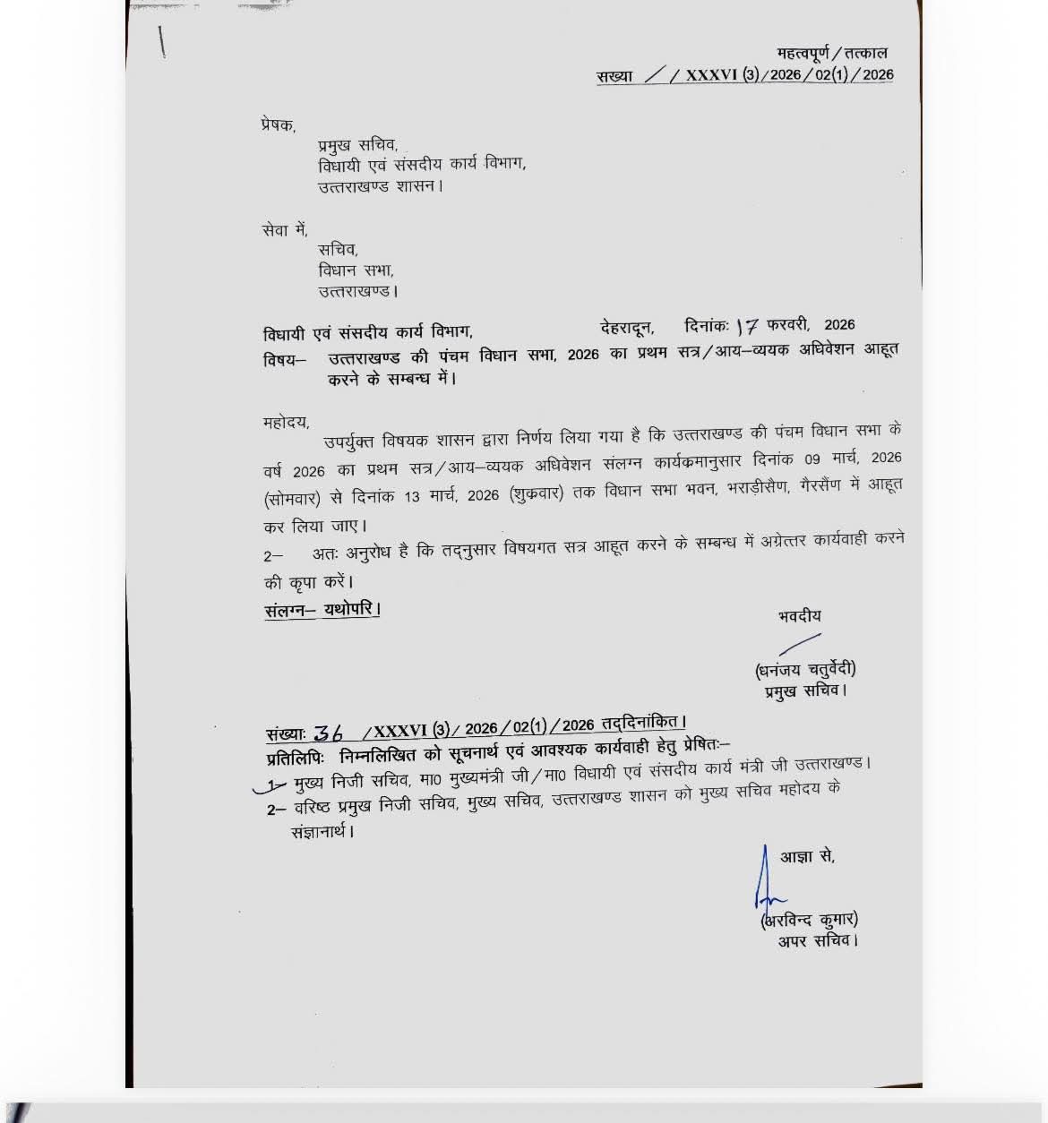 भराड़ीसैंण गैरसैंण में होगा विधानसभा का बजट सत्र, तारीखों का ऐलान