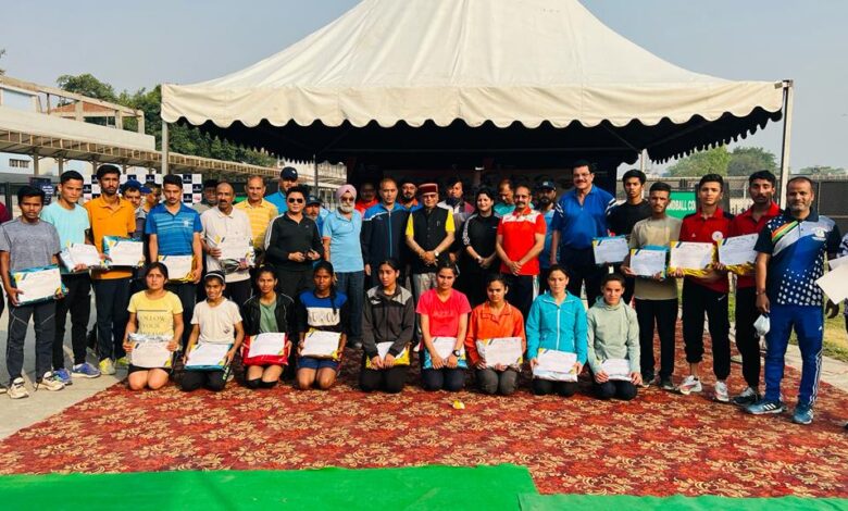 मुख्य अतिथि को स्मृति चिन्ह भेंट करते खेल विभाग के अधिकारी