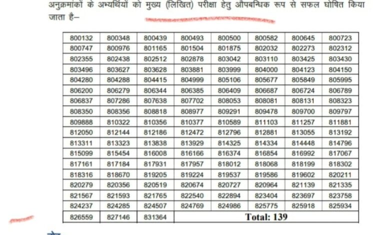 देहरादून। उत्तराखण्ड लोक सेवा आयोग द्वारा 13 मार्च, 2022 को आयोजित उत्तराखण्ड न्यायिक सेवा सिविल जज (जू०डि०) परीक्षा- 2021 के प्रारम्भिक परीक्षा के आधार पर निम्नलिखित अनुक्रमांकों के अभ्यर्थियों को मुख्य (लिखित) परीक्षा हेतु औपबन्धिक रूप से सफल घोषित किया है। मुख्य परीक्षा एवं कम्प्यूटर आधारभूत ज्ञान की परीक्षा दिनांक 02 अगस्त से 05 अगस्त 2022 तक प्रस्तावित है। इस सम्बन्ध में विस्तृत विवरण आयोग की वेबसाईट पर पृथक से प्रसारित की जायेगी। रिजल्ट देखने के लिए आयोग की वेबसाइट ukpsc पर क्लिक करें।