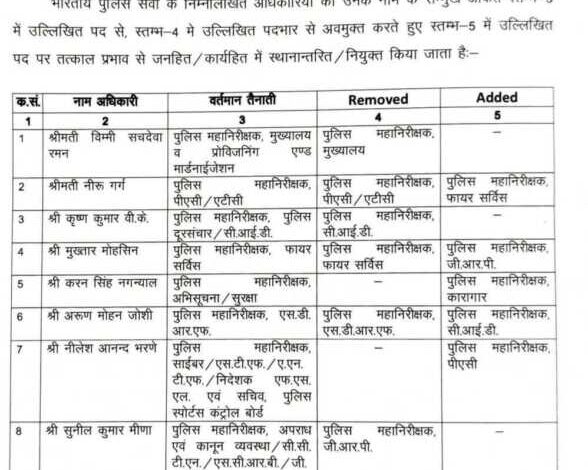 प्रदेश में ips अधिकारियों के कार्य में बंपर फेरबदल, देखिए किसे क्या मिला