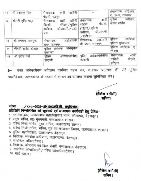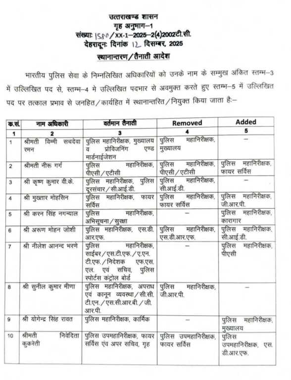 देहरादून। धामी सरकार ने आईपीएस अधिकारियों के कार्यक्षेत्र में बंपर फेरबदल किया है। देखे किसे क्या जिम्मेदारी मिली